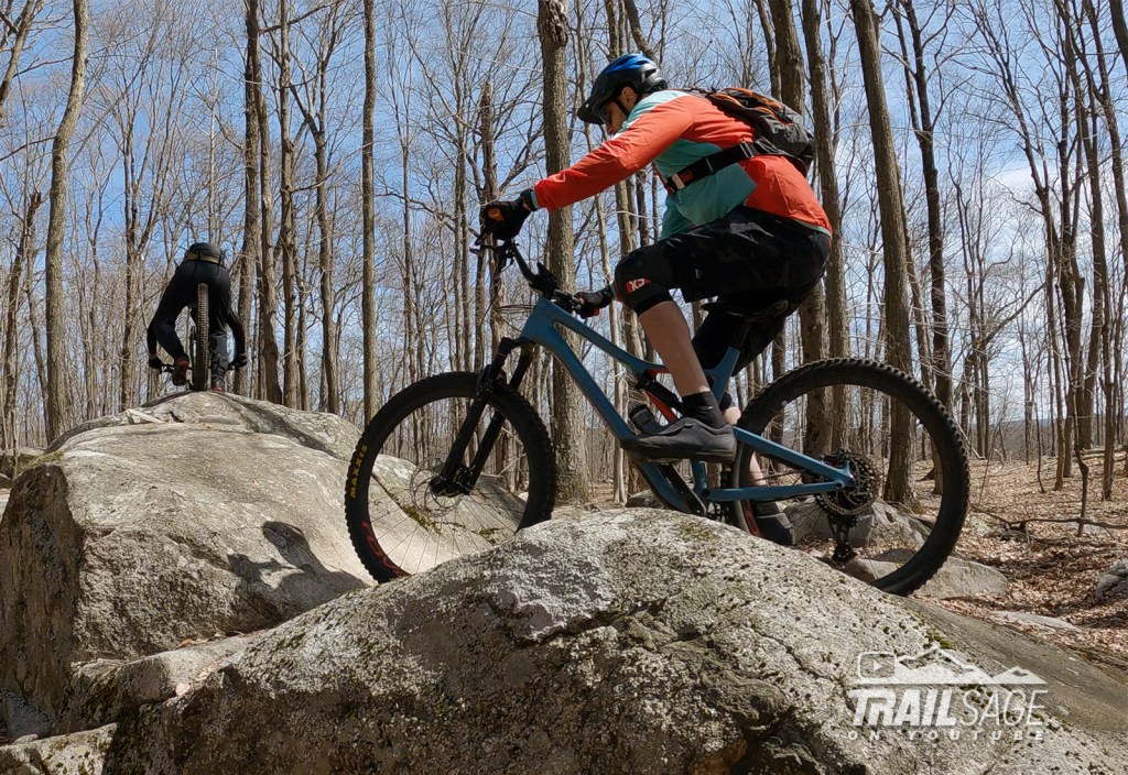 Hemlock Hills, which is also known as Bennett’s Pond, is full of big rock rolls and technical rock gardens that were a lot of fun to play on. But they make you earn that with several punchy climbs throughout. It’s also a little bit of a spaghetti maze of trails, especially at the start, so have your trail forks ready. But we all really enjoyed this network of trails.